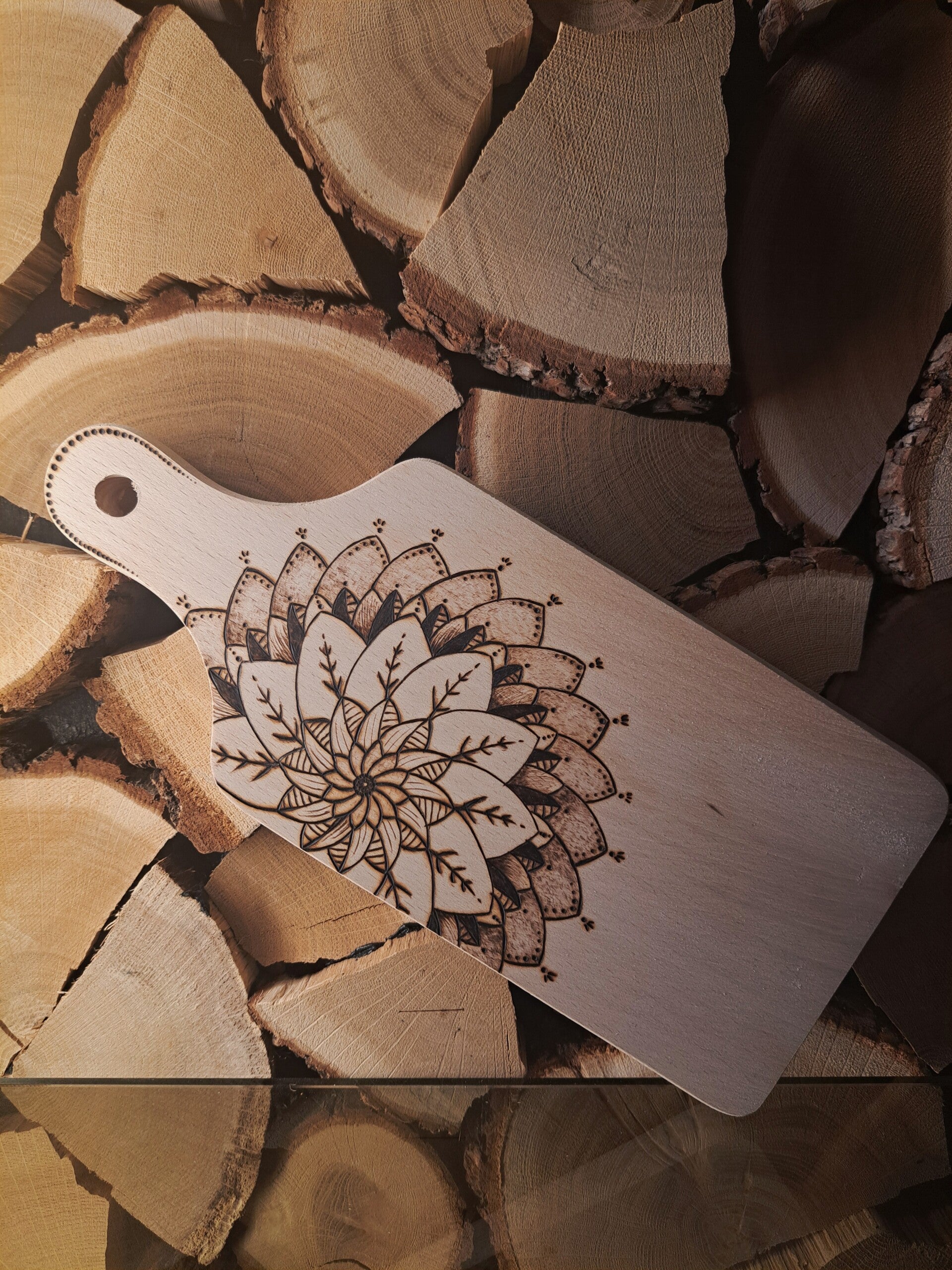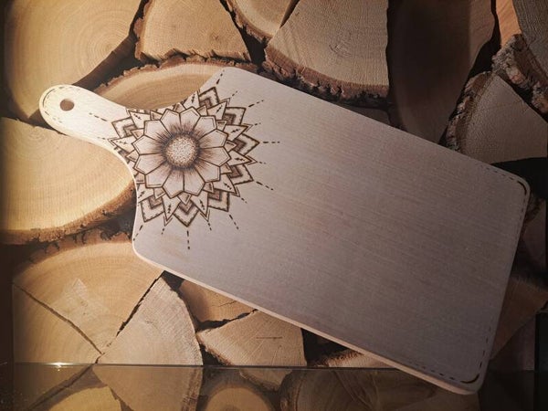 Die Motive werden mit Hand gebrannt. Dadurch wird jedes Brett zu einem Unikat und jedes wird anders aussehen.
